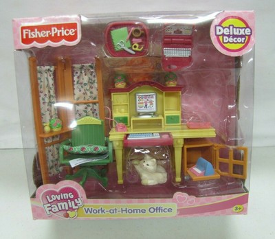 New Fisher Price Loving Family Dollhouse Work At Home Office Set Desk Cat 2004 27084353556 Ebay