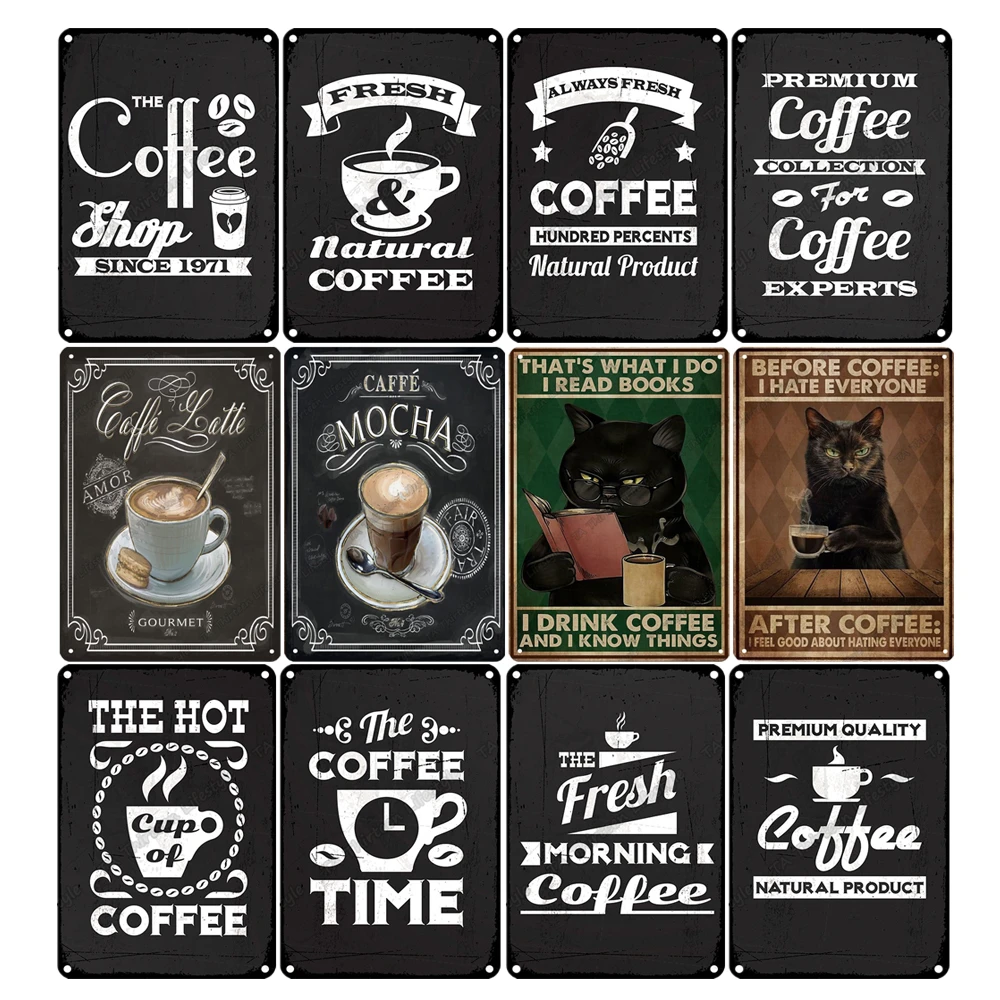 Metal Sign Plate Funny Balck Cat Coffee Home Wall Decortin Plaque For Bar Shop Man Cave Garden Kitchen Decoration Iron Poster Aliexpress